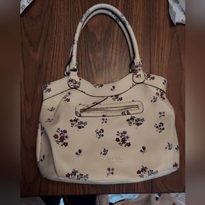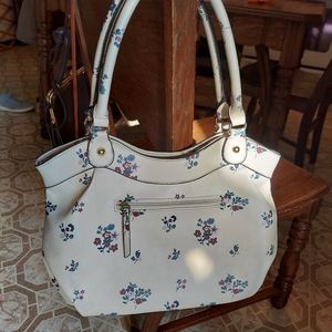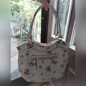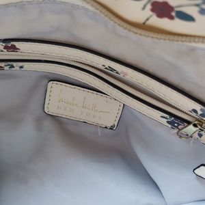 Nicole Miller Zipper Floral Cream Shoulder Large Purse