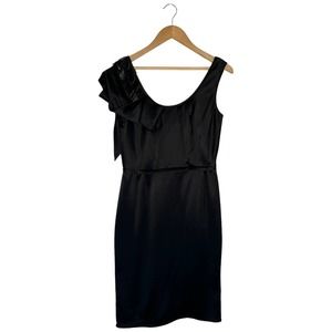 Lavender Label Vera Wang Beaded Cocktail Ruffle Sleeveless Satin Dress Black 6