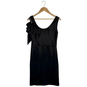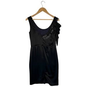 Lavender Label Vera Wang Beaded Cocktail Ruffle Sleeveless Satin Dress Black
