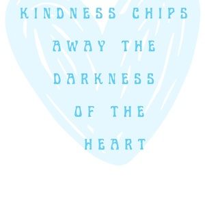 Super cute design featuring a blue graphic heart under a darker blue text that reads “ kindness chips away the darkness of the heart.”