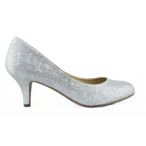 * City Classified Comfort Women Classic Heel Pumps Silver Glitter Closed Round Toe CARLOS-H