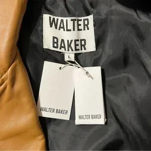 Walter Baker Juls Leather Moto Jacket, NWT, Size Large, Color-Camel. This figure flattering leather moto jacket is chic, feminine, and adds instant style to your wardrobe. This jacket features a notch lapel, long sleeves with zip cuffs, front zip closure, front flap pocket, front side zip pockets, and adjustable side panel detail. Shell-100% lamb leather, lining-100% polyester.