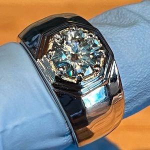 2.06 Ct Vvs1` Round White Ice Moissanite Octagon Men's Ring