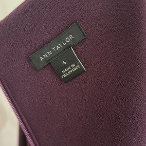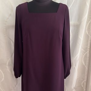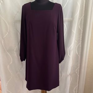 Ann Taylor, Purple, Square Neck, Long Sleeve Dress, Size 6. Dress is fully lined and has a back zipper, measures 18 1/2 inches from armpit to armpit, 36 inches from shoulder to hem. In excellent condition.