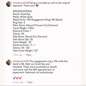 ***THIS WAS APPRAISED BY A LICENSED GIA APPRAISER IN 2021 & APPRAISED FOR $8399. THE SPECS ARE DIRECTLY FROM THE APPRAISAL BUT I WONT POST IT HERE AS I’VE HAD THEM STOLEN BEFORE. POSHMARK WILL RECEIVE THE ORIGINAL APPRAISAL AND THEN FORWARD TO YOU AFTER AUTHENTICATION. I HAVE POSTED A VERY SMALL PORTION OF IT W/THE SIGNATURE AND VALUE. THANK YOU!