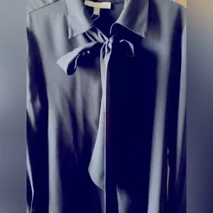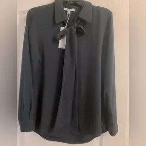 NWT Antonio Melani Navy Blue Detachable Bow Tie Long Sleeve Button Blo…
