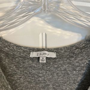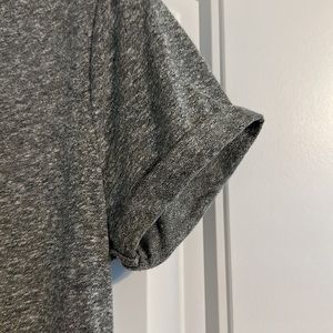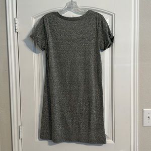 women’s z supply gray knotted dress. sleeves are permanently rolled and has a permanent knot on the bottom right side. material is similar to a light tshirt, it is soft and lightweight. has a v-neck. the color gray is a little more lighter in person than what the pictures are showing. falls a little above the knee. size S, great condition!