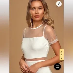 Lulu’s Way We Love White Mesh Short Sleeve Bodycon Dress Size M