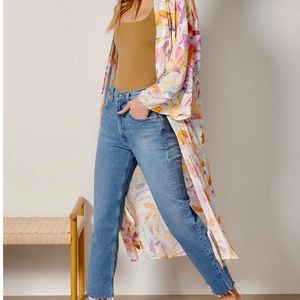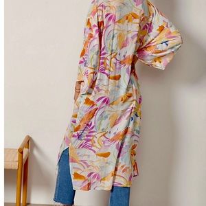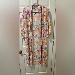 A breezy layer for brunch to beach, this resort-ready wrap by Z Supply features a maxi silhouette, three-quarter sleeves, and lightweight crinkle fabric in a tropical palm print. 100% Rayon Weave. Length from Shoulder to Hem: 46"