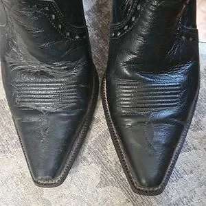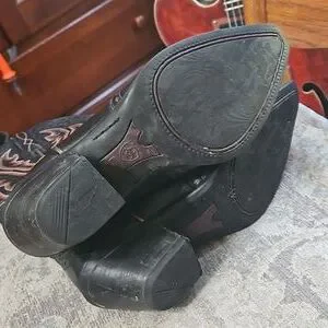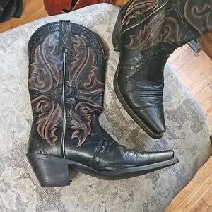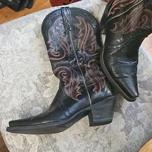 ARIAT Snip Toe Black Boots with maroon stitching. Women's size 7B w 2 inch heel. Excellent condition with minor wear, please see pictures. Clean inside and out.