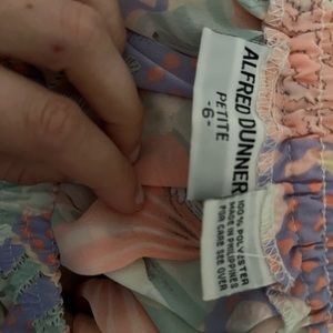 Vintage Alfred Dunner Pleated pastel skirt. Has an elastic band and is unlined (a skirt slip is suggested for my modest girlies). Really beautiful colors to it ☺️💕