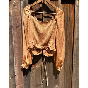 NWT ASTR the label LOVE SONG RUCHED FRONT LONG SLEEVE TOP Apricot Med