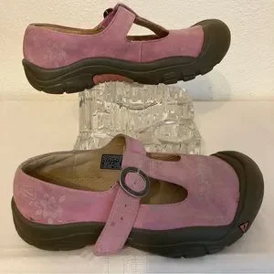 Kids Keen Mary Jane Pink Suede Upper with floral accents on top Size 2 Shoe