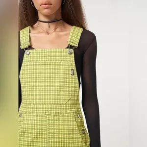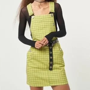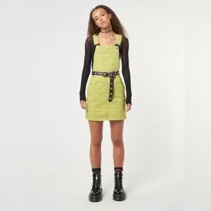 NWT Minga London Lime Green Plaid Dungaree Dress