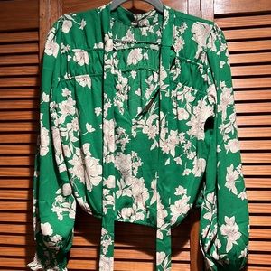 Kelly green and cream flower print top.