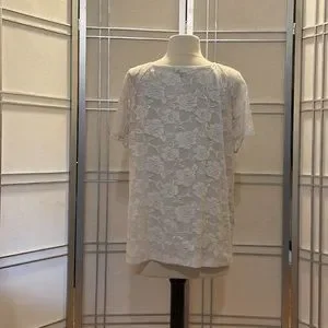 *AGB Woman White & Black Lacey Short Sleeved Top