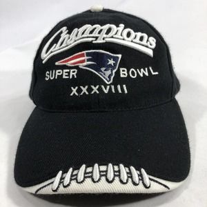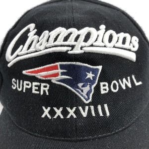 New England Patriots Super Bowl XXXVIII Champions Black Football Hat Cap Men NFL.