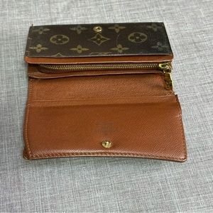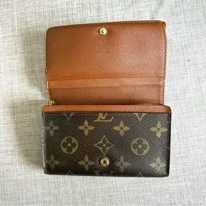 Louis Vuitton Womens Brown Monogram Canvas Leather Wallet Authentic