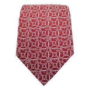 GIANFRANCO FERRE Red Geometric Monogrammed Silk Tie Italy 57"/3".3/4 EX COND
