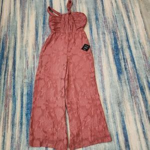 Lulus Womens Rose Floral Chiffon Jumpsuit Sleeveless Burnout Pink Small Size