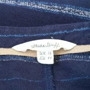 White Stuff Dress Tunic Navy Blue 100% Cotton Striped Shift Casual Smock 16