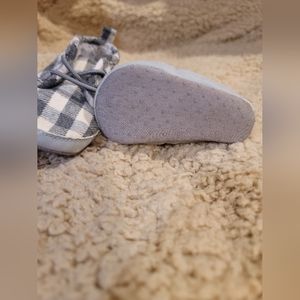 Adorable checkered grey and white baby shoes.