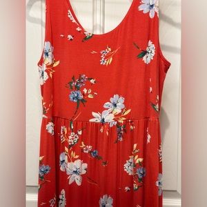 SO Floral Maxi Dress. Size Large. 17” pit to pit and stretches, 16” waist abd stretches, 58” length. Feels like a t-shirt, very comfortable. A great spring and summer dress you can take into fall with a denim jacket and boots.Bx480