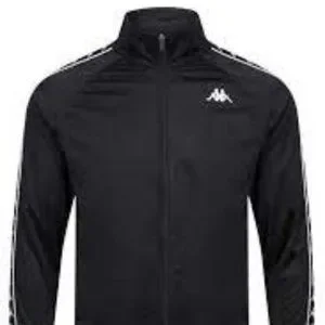 KAPPA's Black jacket in brushed tricot. Ribbed sleeve borders, front full zip opening, Omini logo tape with piping applied on sleeves, laser cut Omini logo applied on chest.