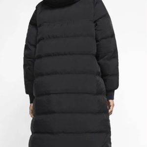 Smooth nylon fabric with a durable finish helps keep you comfortable, while duck down insulation and a storm flap help keep you warm and cozy. Supersoft fleece cuffs pull over your hands for added warmth when needed. An extended length keeps you covered and stylish. The zipper hits above your knees so it's easy to pull