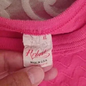 Rebel textured 3/4 sleeve top, round neck, in a pretty bubblegum pink color. Good condition size XL.