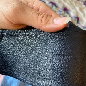 Emporio Armani thick waist belt in navy blue leather