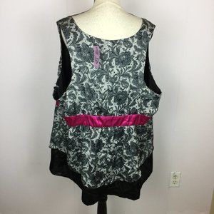 New! Torrid Tank Top Blouse 4X Womans Plus Black White Lace Print Sleeveless