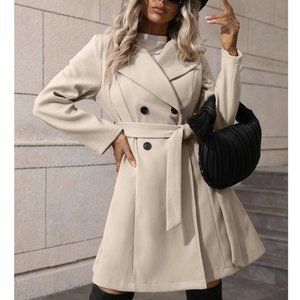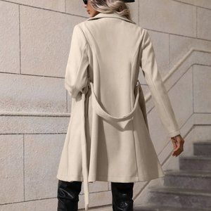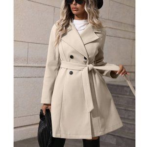 Classic Lapel Neck Double Breasted Belted Coat Beige