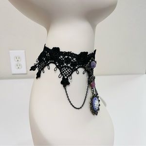 Black Lace Crochet Purple Pendant Chain Drop Chain Victorian Choker Necklace