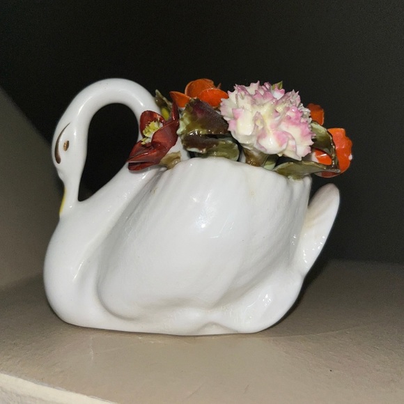 🌹3/20$🌹Vintage White Porcelain Swan with Flower Bouquet Figurine
