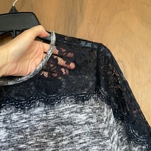 Lace detail at neckline and on part of top of sleeves
