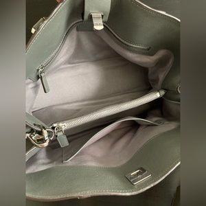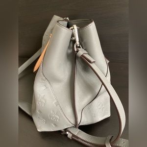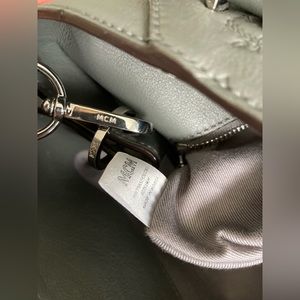 Beautiful and ever so lightly used MCM Essential bag for sale. This item features a cool gray color scheme along with contrasting saddle accents. This bag has buttery soft leather with an embossed monogram detail and silver hardware. Item is clean throughout and in excellent used condition. There is slight color wear on the corners of the bag along with some mild signs of use on the hardware. This is the perfect medium sized satchel with a spacious interior and multiple useful compartments. Item measures roughly: 13” x 7” x 9”. Modern luxury.