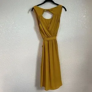Crisscross back. High-low hem. Belted waisted. Mustard.