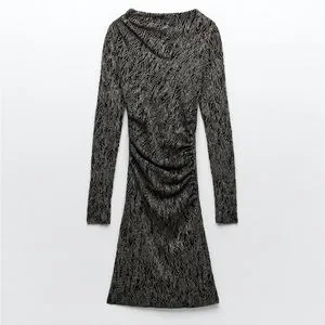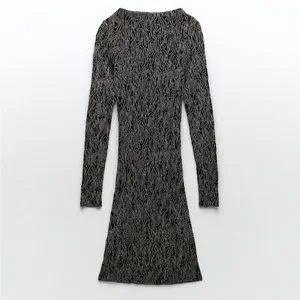 ZARA LONG SLEEVE KNIT DRESS WITH METALLIC THREAD