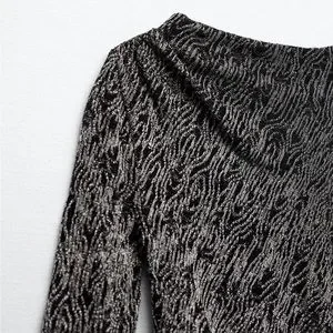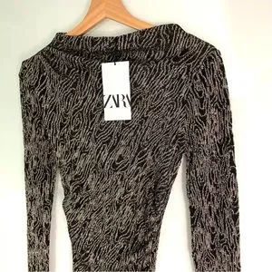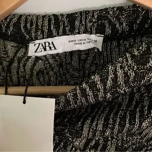 ZARA KNIT MINI DRESS WITH METALLIC THREAD BLACK SILVER AND GOLD