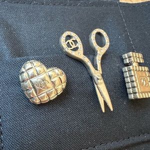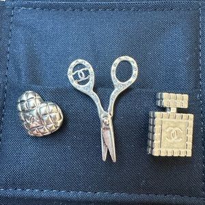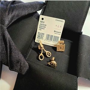 🆕 Chanel Matte Gold Mini Brooch Set of 3: CC Heart, Perfume Bottle & Scissors