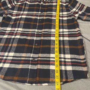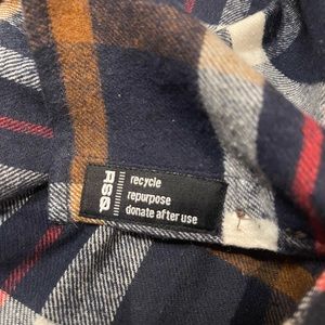 This is a NWT RSQ Flannel long sleeve shirt for men in a size small. This flannel is super soft and comfy. The colors of this shirt are blue, white, red, and brown. This shirt is a button down with one front pocket on the left only. Prefect for a teenager.