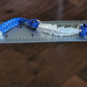 Each strap includes a pair of colored, leather-like, braided cords.
