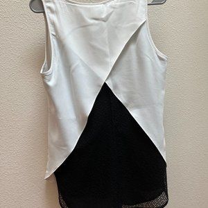 CAbi White and Black Tulip-Back Split Tank Blouse