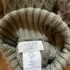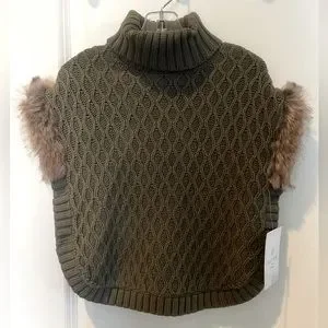 Aspen Kids Girls Shawl/Shrug Turtleneck Sweater Size: 2T Condition: NEW with Tags Aspen Kids Girls Pullover Shawl/Shrug with Turtleneck Collar and a faux Fur Trim on Sleeves, Olive Green in Color Body: 60% Cotton, 49% Acrylic Faux Fur: 55% Polyester, 45% Acrylic