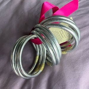 🩶SET OF 3 Budhagirl all weather bangles Silver pool summer 7.5” around inside