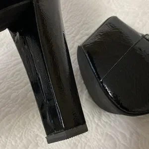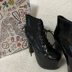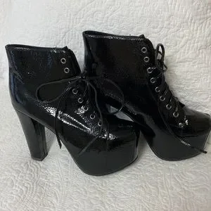 Unworn. Tried on only. Box included. Black crinkle patent. Lace up. Please refer to photographs for details. Feel free to reach out with any questions below ๐