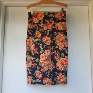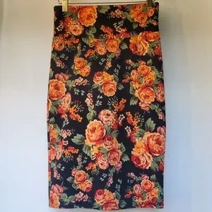 SOLD - LuLaRoe Cassie Pencil Skirt Black & Orange Floral Size XS Peony Rose