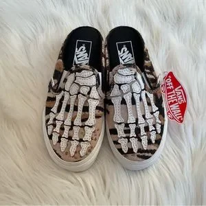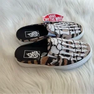 This is a pair of brand new with tags Vans Classic Slip-On Hazy Bones Mules Sneakers. Size 5. I saw a few small marks on the sides from storage. No box.