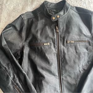 Wilson’s Leather Motorcycle Jacket Faded Black Distressed Full Zip Moto Large